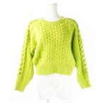 ムルーア MURUA ニット セーター クルーネック 長袖 ショート丈 ボリューム ケーブル編み 立体感 F 黄緑 イエローグリーン レディース