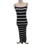 ザラ ZARA ニットキャミソールワンピース キャミワンピ ノースリーブ ボーダー マキシ ロング S 黒 ブラック 白 ホワイト ■MET2