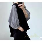 Tシャツレディース ドッキングトップス 切り替えブラウス 長袖