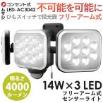 センサーライト ムサシ RITEX 14W×3灯フリーアーム式LEDセンサーライト LED-AC3042 防犯ライト ledライト 人感センサー ライト 屋外 玄関 照明 防犯グッズ 投光器 常夜灯