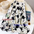 プリント柄スカート ロング シフォン プリーツ レディ―ス ボトムス プリーツス チェック Aライン カラー リゾート