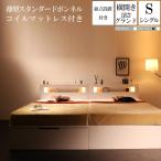 【送料無料】 組み立て サービス付 ガス圧 跳ね上げ ベッド 収納ベッド ベッドフレーム マットレス付き シングル 横開き 深さグランド 棚付き 宮付き ライト付き コンセント付き 収納付きベッド ルナライト 薄型スタンダードボンネルコイルマットレス付き 大容量