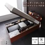 送料無料 組み立て サービス付き シングルベッド 収納付きベッド ベッド下 大容量収納 ガス圧式 跳ね上げ収納ベッド サイロス 【スタンダードボンネルコイルマットレス付き】 ヘッドボード 宮付き 棚付き ライト付き 照明 コンセント 高級感 跳ね上げ式 木製 シングルサイズ