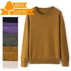 セーター 100%綿 ニット トップス クルーネック 無地 コットン