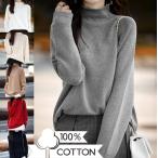 セーター 100%綿 ニットセーター トップス モックネック コットン レディース ファッション 秋冬 防寒