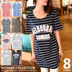 商品名:ルーズシルエット ロング丈 ボーダー半袖Tシャツ/