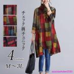 ハイネックグレンチェックワンピース チュニック 秋冬 長袖 秋 チェック 40代50代 大きいサイズ アレア レディース