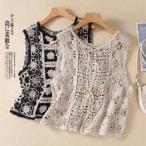トレンドの透かし編みでインナーとのレイヤードスタイルを楽しめるレースベスト。