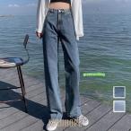 ハイウエスト セミワイドデニムパンツ 脚長見せ ロングパンツ ゆったり 着やせ ボトムス 韓国風 オルチャン定番デニム