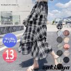ロングスカート ボトムス 春夏 きれいめ 韓国 大人 ママ チェック柄 ウエストゴム 薄手 ドット柄 フラワープリント<br>