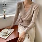 ニット カシュクールニットトップス フリントリボンニット リブニット 長袖 トップス レディース 秋冬 カシュクール