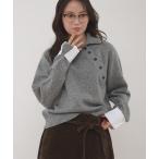 商品名:layered shirt detail stand collar button knit / シャツドッキングスタンドネックボタンニット