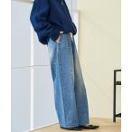 キーワード:ジーンズ デニム デニムパンツ レディース ウエストゴム ストレート ハイウエスト フルレングス リジッドデニム ワイドパンツ 無地