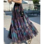 参考商品名:マーブルカラーティアードフリルチュールスカート