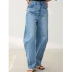 キーワード:ジーンズ デニム デニムパンツ レディース ハイウエスト フルレングス ワイドパンツ 無地