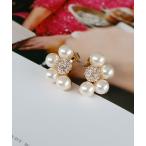 商品名:4粒パール&パヴェボールハーフフラワーピアス 結婚式 パーティー お呼ばれ オケージョン