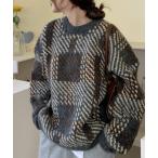 商品名:【SETUP7】クルーネックチェックジャガードざっくりニット セーター SCCH197