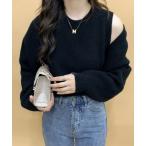 キーワード:ニット セーター レディース クルーネック ショート丈 長袖