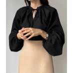 キーワード:ブラウス シャツ レディース ショート丈 リボン 長袖 無地