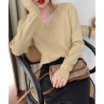 キーワード:ニット セーター レディース vネック 長袖 無地