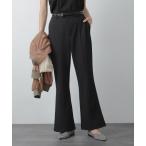 キーワード:スラックス パンツ レディース ウエストゴム センタープレス フルレングス フレアパンツ 無地