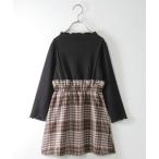 キーワード:ワンピース キッズ 子供服 女の子 チェック フレア 長袖 膝丈 無地