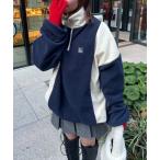 商品名:【低身長用サイズ&メンズサイズ登場!】配色フリースハーフジッププルオーバー