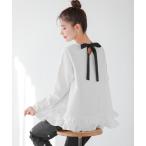 キーワード:tシャツ レディース フリル リボン 長袖 エレガント オケージョン オフィスカジュアル デート フェミニン 定番