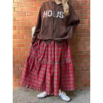 キーワード:スカート ウエストゴム チェック ティアード フリル ロング ガーリー デート 韓国ファッション 記念日 大人カジュアル 定番 旅行