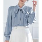 キーワード:ブラウス シャツ レディース フリル ボウタイ リボン 長袖 無地