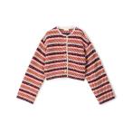 キーワード:ニット セーター レディース クルーネック ショート丈 フリンジ ボーダー 長袖