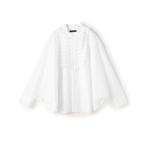 キーワード:ブラウス シャツ レディース コットン ショート丈 ノーカラー フリル 長袖 無地