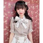 キーワード:ブラウス シャツ レディース フリル ボウタイ リボン レース 半袖 ガーリー デート フェミニン