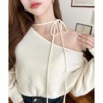 キーワード:ニット セーター レディース オフショルダー リボン 長袖 無地 WEB限定 デート ドライブ フェミニン プチプラ 紅葉 大人カジュアル 定番 冬