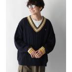 キーワード:セーター ニット メンズ vネック ワンポイント 長袖 キレイめ ジェンダーレス デート ミリタリー 公園 合コン 秋 別注 コラボ