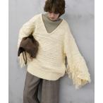 キーワード:ニット セーター レディース vネック フリンジ 長袖