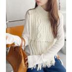 商品名:ケーブルデザイン 裾フリンジニットベスト