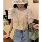 商品名:ビスチェ かぎ針 ニットベスト サマーニット ベスト キャミソール ショート丈 クロシェ編み