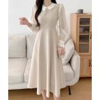 商品名:配色襟付き異素材ボリュームスリーブAラインワンピース