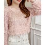 商品名:クロップド丈 フェザー ニットトップス/シャギー