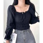 キーワード:ブラウス シャツ レディース コットン ショート丈 フリル リボン 長袖 無地 ガーリー デート フェミニン プレゼント ギフト 韓国ファッション 合コン 秋 春 定番