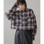 キーワード:ブラウス シャツ レディース ショート丈 チェック レギュラーカラー 長袖
