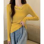 キーワード:ニット セーター レディース vネック ワンポイント 長袖 無地
