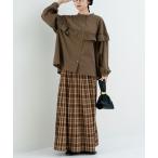 キーワード:スカート ウエストゴム チェック プリーツ ロング ナチュラル ベーシック 公園 紅葉 大人カジュアル 旅行