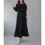 商品名:裏起毛ボートネックトップス+セミフレアスカート set