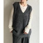 商品名:オーバーサイズ深Vネックフェザーヤーンシャギーニットベスト