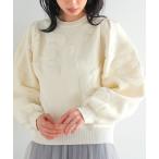 キーワード:ニット セーター レディース クルーネック 花柄 長袖 無地