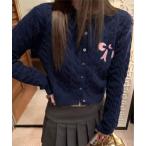 商品名:ケーブル編み リボン 刺繍 ニット カーディガン