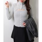 商品名:カットアウト シャギー フロントボタン タートルネック ニット トップス