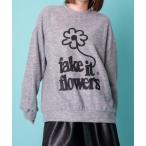 キーワード:ニット セーター レディース クルーネック プリント 花柄 長袖